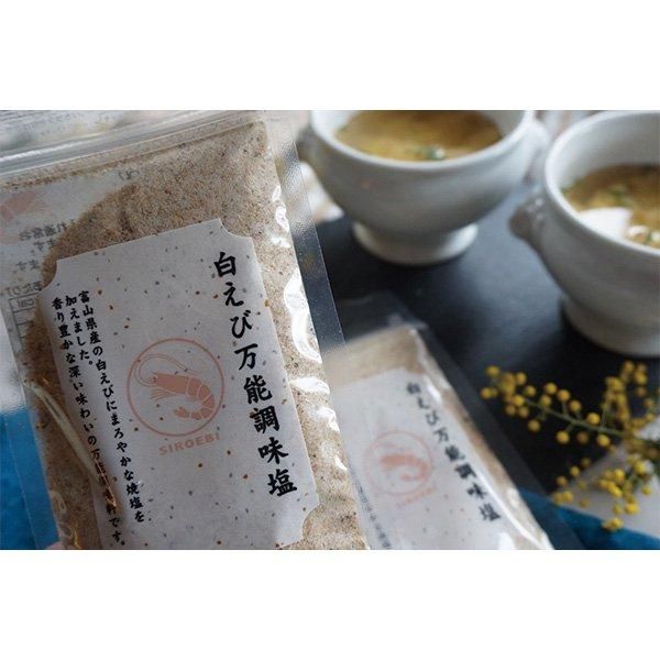 富山県産の白エビにまろやかな焼き塩をブレンドしたこの調味料は、香り豊かで深い味わいが特徴です。